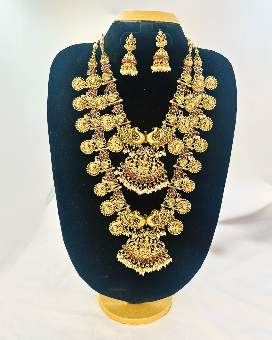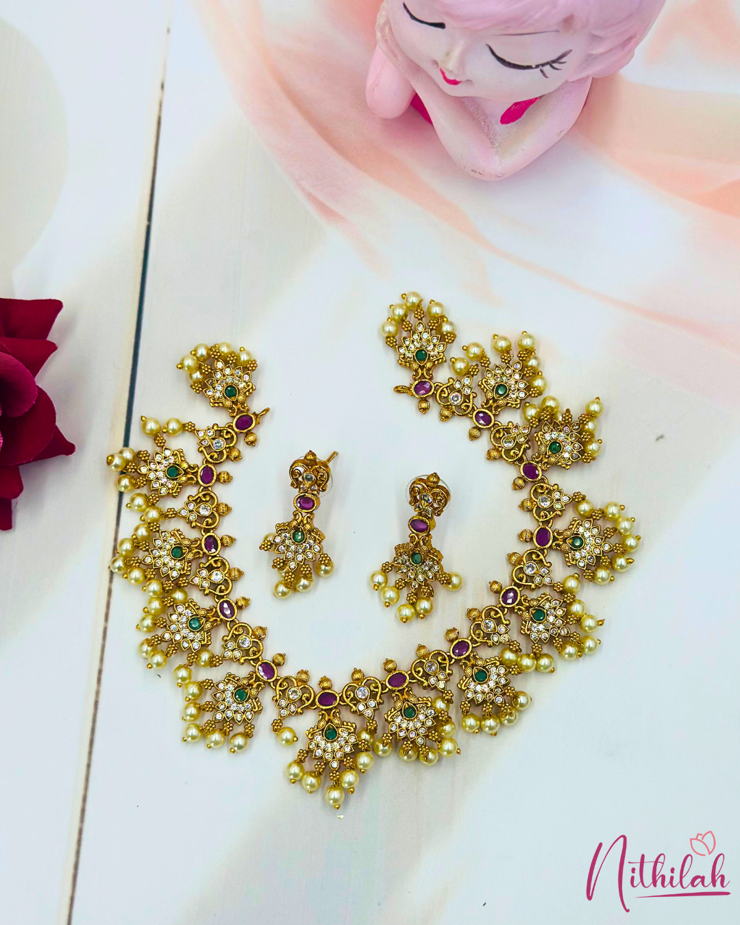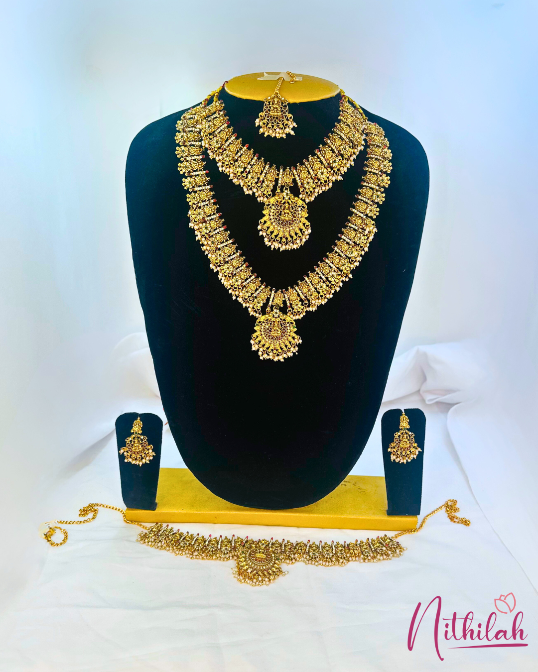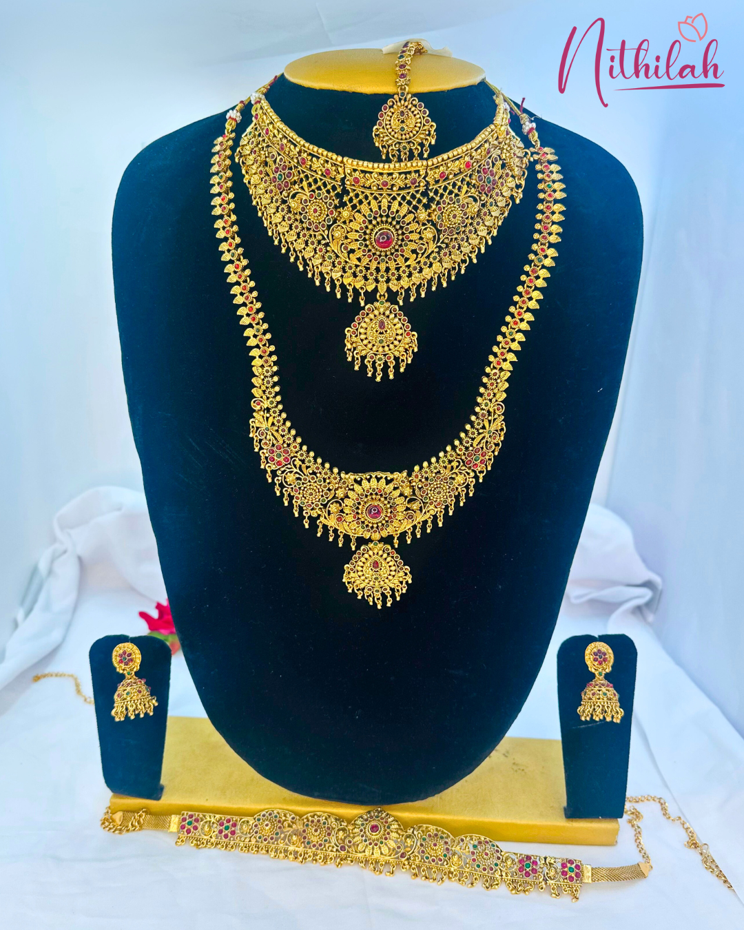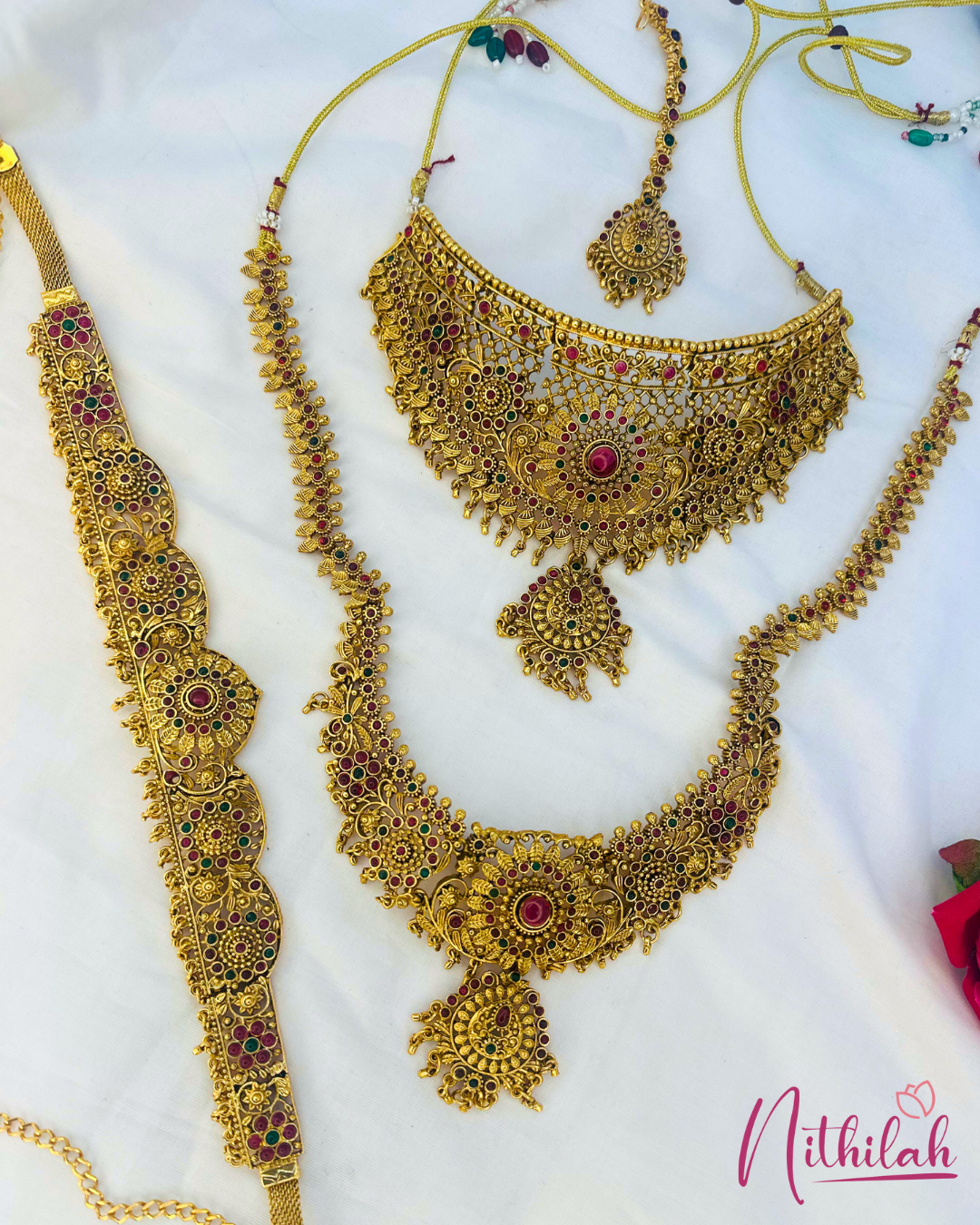 A bridal jewellery set is a collection of jewelry pieces that are specifically designed for a bride to wear on her wedding day. A typical bridal jewellery set includes a artificial jewellery necklace, earrings, bracelets, and a ring. Bridal jewellery sets are often made of precious metals and gemstones, and are designed to complement the bride's wedding dress and overall wedding theme.