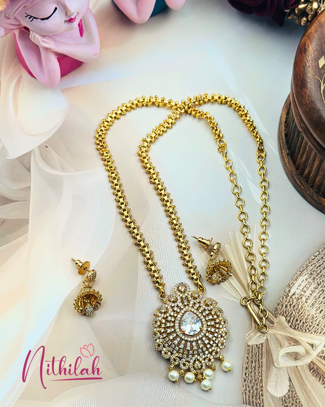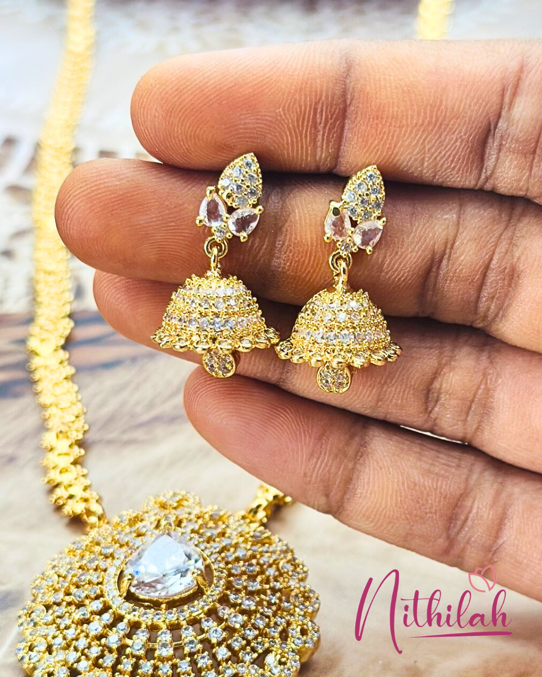 Materials used: Premium quality gold plate with American Diamond and Artificial Pearls