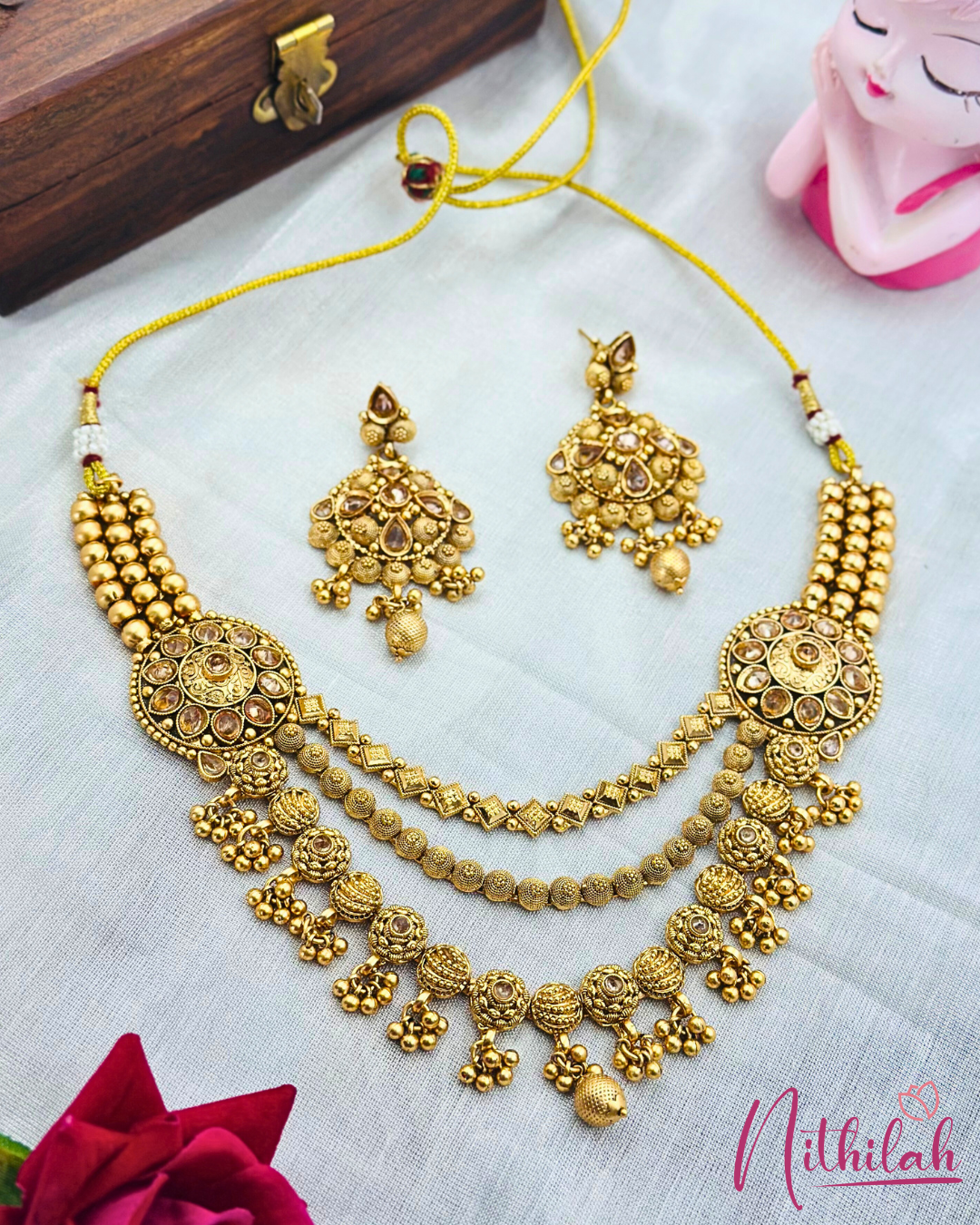 At Nithilah, Festive jewelry collections includes a wide variety of Artificial jewelry pieces, such as Imitation necklaces, bracelets, Imitation earrings, rings, and pendants. They are often crafted with precious metals such as gold and silver, and may feature gemstones, American diamonds, pearls, or other stones.