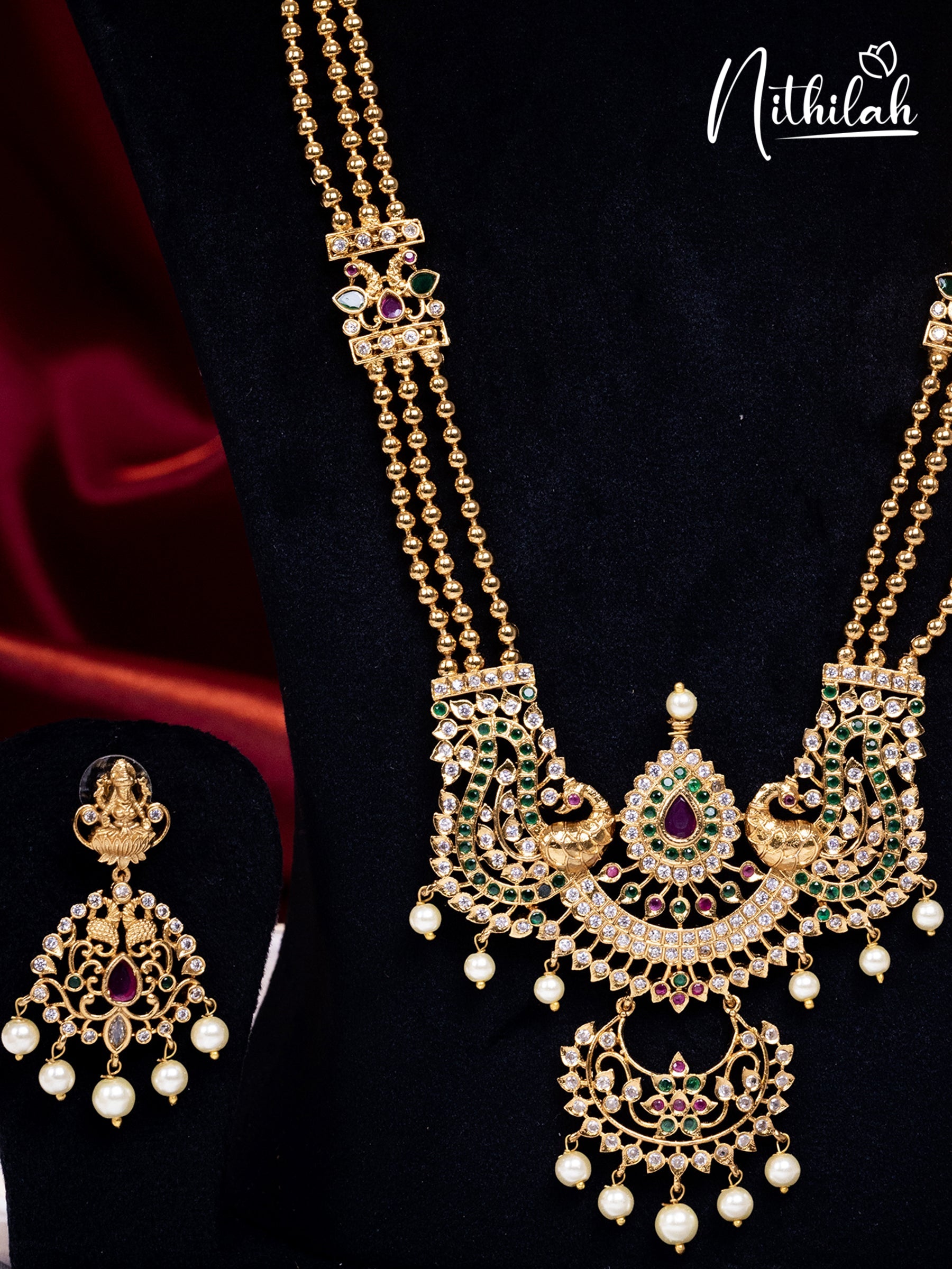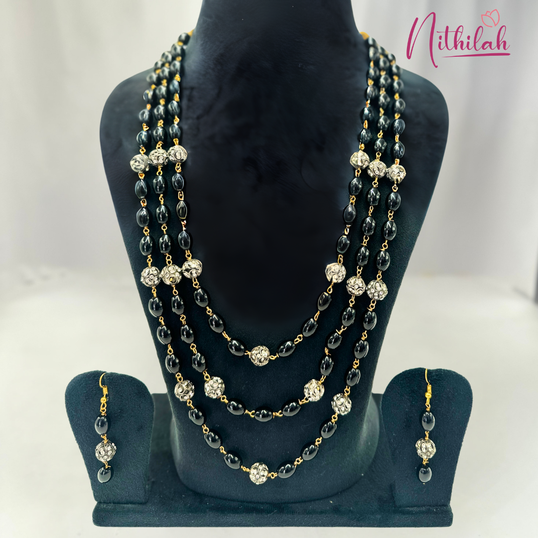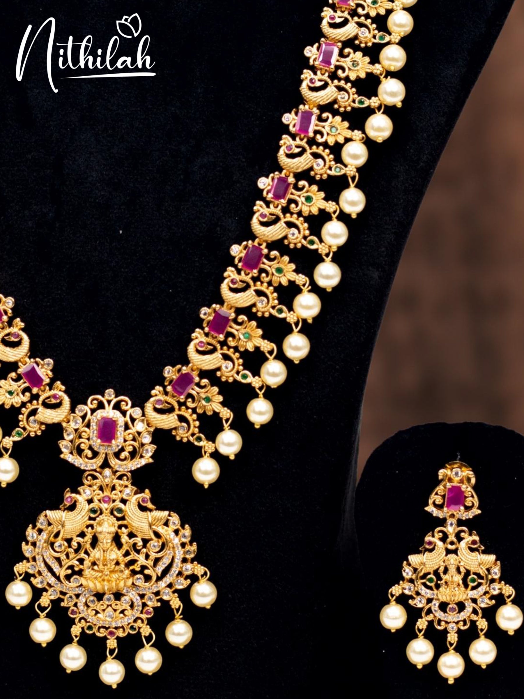 Long Harams also referred to as classical Indian Necklaces, which is a symbol of timeless beauty and cultural richness. Nithilah offers exquisite jewel pieces which is a perfect blend of tradition and style. Explore our unique collection priced less than 2500 featuring Barrel Beads, Oxidized Finish, Kundan Embellishments, Lakshmi Motifs, Antique Charm, and the popular Guttapusalu Design. The brilliant hues of barrel beads can enhance your ethnic attire after being donned with Long Harams. The cylindrical beads of barrel add a touch of delicacy and are a perfect choice for ladies who prefer refinement with grace.