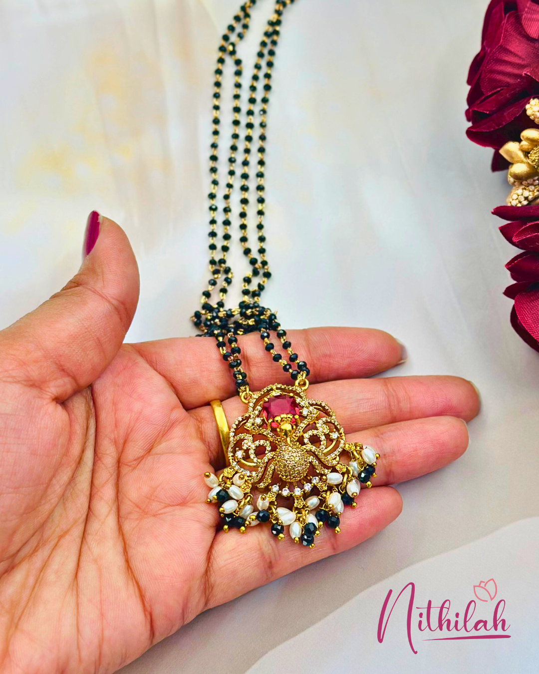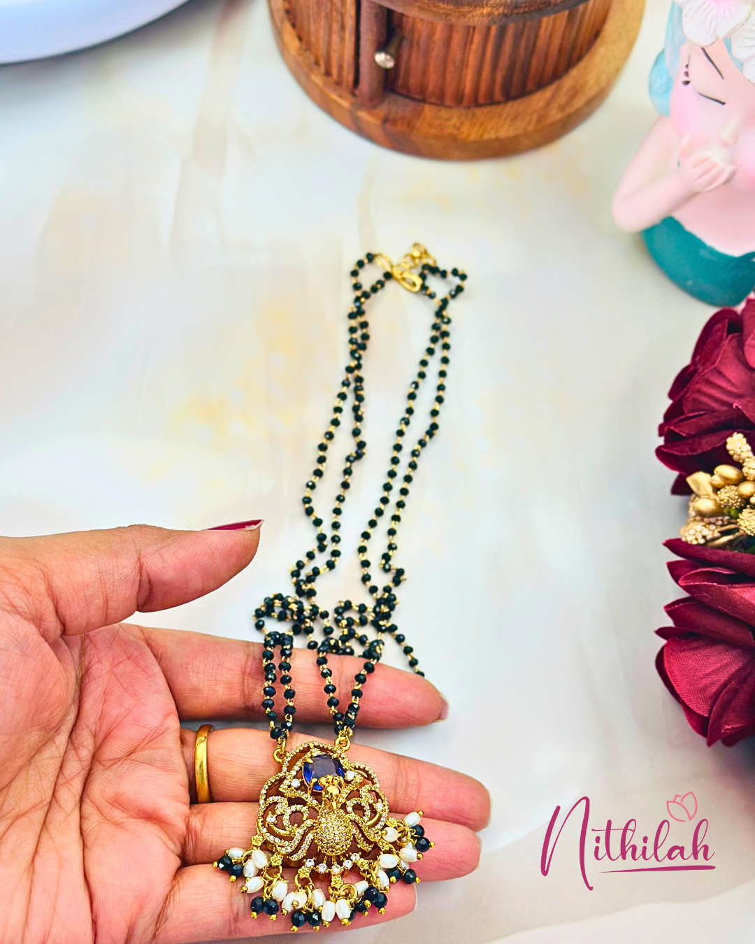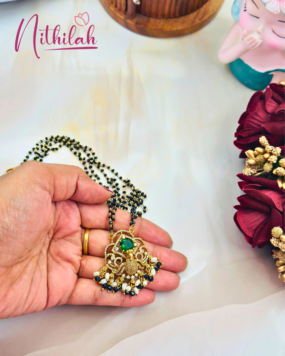 Details & Specifications:Materials used: Premium quality gold finish with AD StoneWeight :Necklace-15 gmsLength :Necklace–24cmFastening: Hook