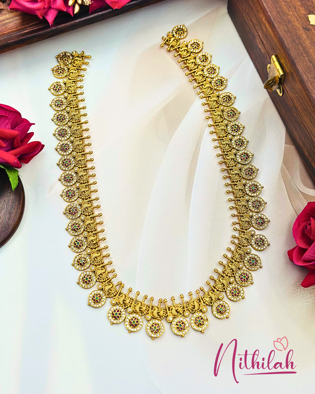Matte Haram/Matte Finish Long HaramMatte Haram is a matte finish long haram which is designed following the classical style with beautiful patterns and a velvety style. Matte harams are available in various styles ranging from traditional to present trendy day, which makes them an excellent option for any kind of occasion. Matte jewellery set always comes in trendy fashion. It keeps the attraction and beauty throughout the time. Matte Gold HaramMatte Gold Harams can be worn with both traditional and modern attire, which makes them a versatile addition to your jewellery collection. The non-reflective layer offers an appealing and weightless feel, thus making it perfect for long-lasting use for times of celebration. Nithilah’s Matte HaramNithilah’s Matte Haram collections add a trendy twist to your classic jewellery collection or to your celebration attire. Explore our unique collection to find the ideal matte finish Haram for any style and occasion. Matte jewellery haram includes Matte gold haram, Matte black haram, Matte finish haram, Matte long haram, Minimalist matte haram, Boho matte haram, Modern matte haram. Why choose Nithilah?Unique designs: Nithilah gives you an exclusive special design that helps you to show your unique sparkle and stand out from the crowd. Variety of styles: Fashion styles change according to seasons. Nithilah provides a wide range of fashion patterns for different kinds of events. RELATED PRODUCTSOxidised Choker Temple Haram Oxidised Necklace |