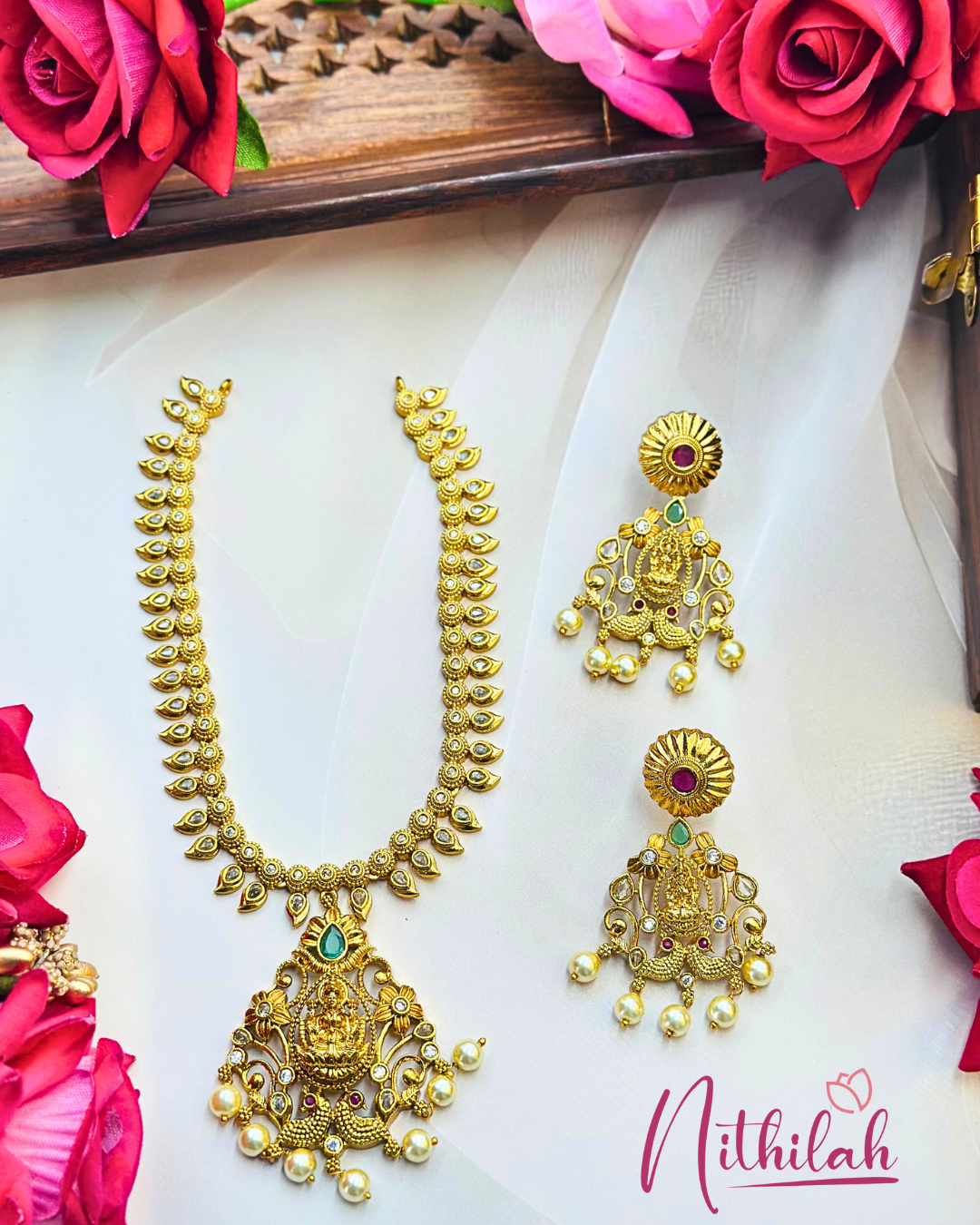 Indian temple jewelry, with its rich cultural heritage, is a prime example of excellent artistry and profound spiritual meaning. Ancient temples' elaborate designs serve as the inspiration for this elaborate jewelry, which is frequently crafted of gold. Temple jewelry is adorned with vivid jewels, religious symbols, and deities, reflecting both cultural heritage and timeless beauty. Worn in auspicious occasions and ceremonies, these pieces represent the rich traditions of Indian spirituality and artistry and serve as both decorative accents and devotional emblems.