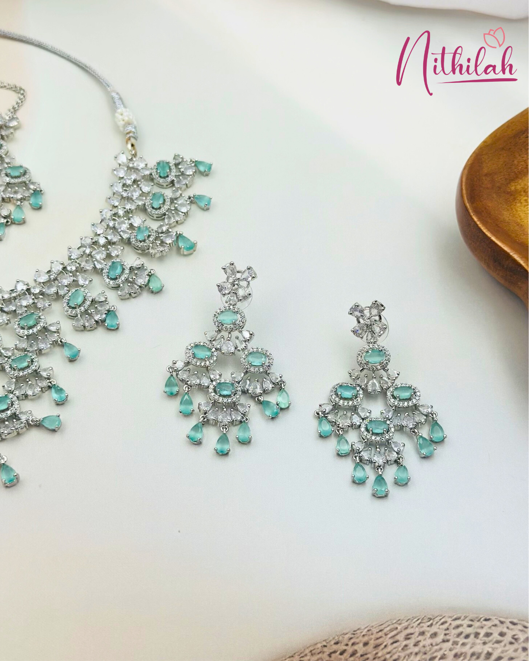 Mint Green American Diamond Necklace Set