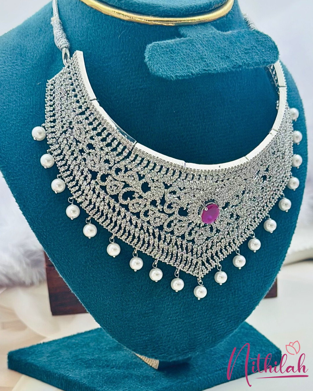 Materials used: Silver Finsih with CZ/American Diamond with Pearl Drops